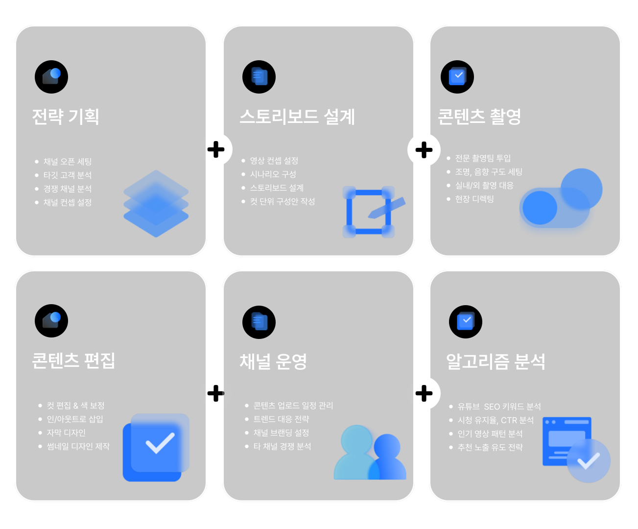 유튜브 제작의 전 과정을 올인원으로 함께 합니다.